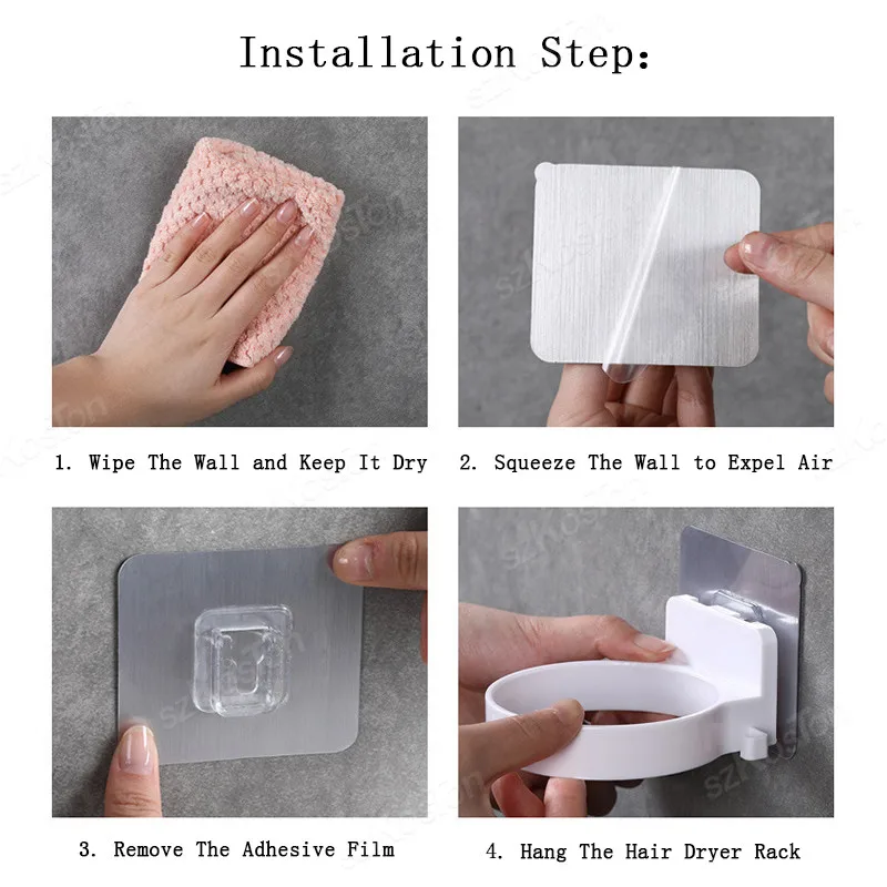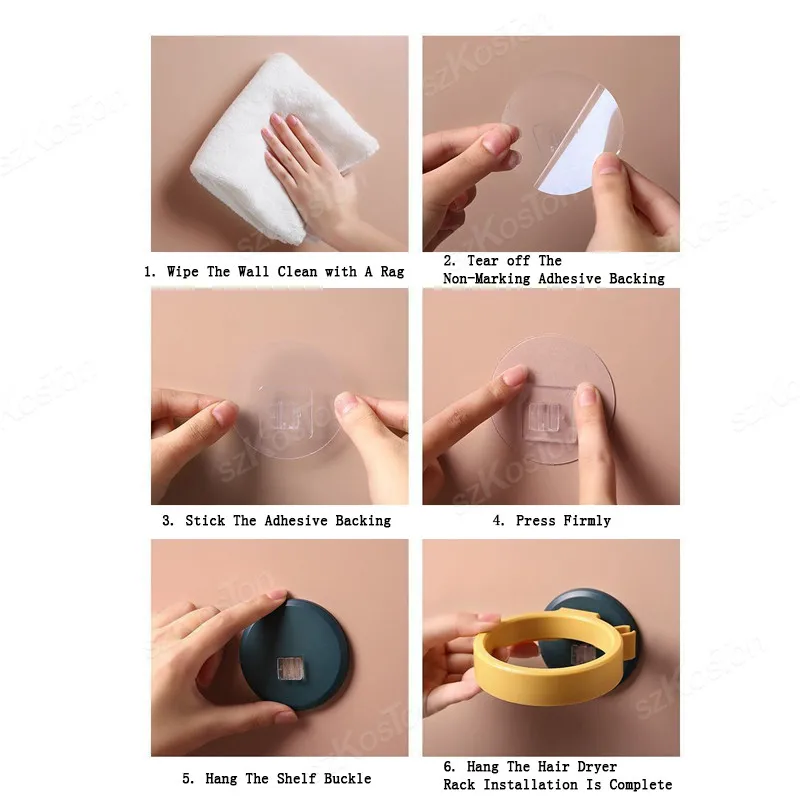 Método de Instalação:1. Retire o Filme do Adesivo Sem Marcas.2. Pressione-o com Força na Parede e Raspe para Fora a Bolha de Ar.3. Encontre a Posição do Encaixe para a Fivela Direita.4. Instalação Concluída.
