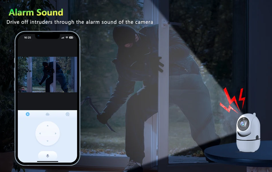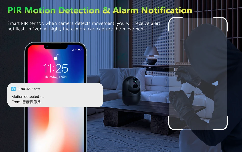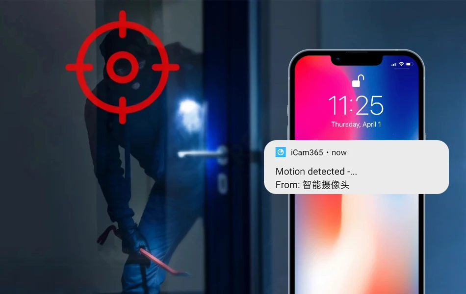 Notificação de Alarme por Push no APP:Qualquer movimento suspeito capturado pelo olho da câmera será detectado e gravado, não deixando ladrões e assaltantes se esconderem. Ao mesmo tempo, você receberá alertas de alarme instantâneos por push no seu smartphone onde quer que esteja.
