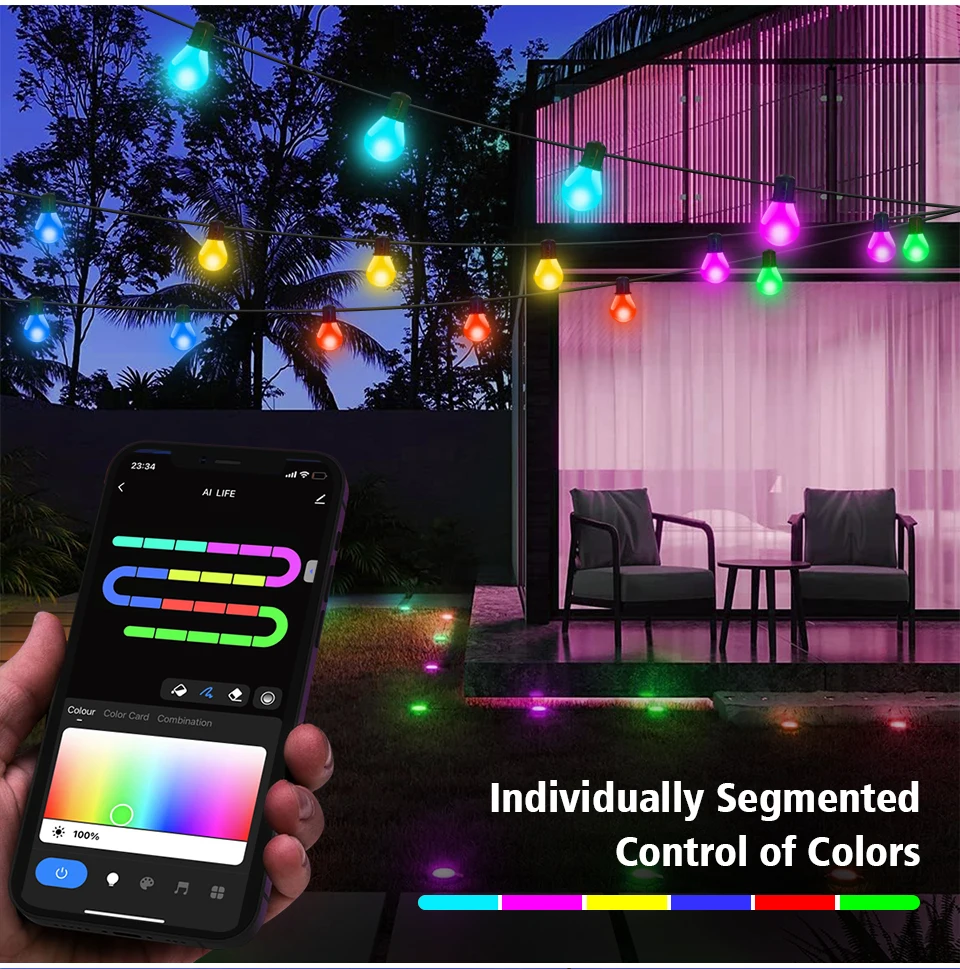 Certificação: CE, FCC, RoHSOpção de Escolha: SimQuímico de Alta Preocupação: NenhumMétodo de Instalação: AutônomoBaterias Inclusas: SimTipo de Item: Contas (Beads)Fluxo Luminoso: 249-2000Número do Modelo: Cordão de Luz LED Inteligente WIFITensão Nominal: 5VOrigem: ChinaFonte de Energia: DCForma: BolaTensão: 5VÀ Prova d'Água: IP65 (*Nota: Especificação detalhada indica IP65*)