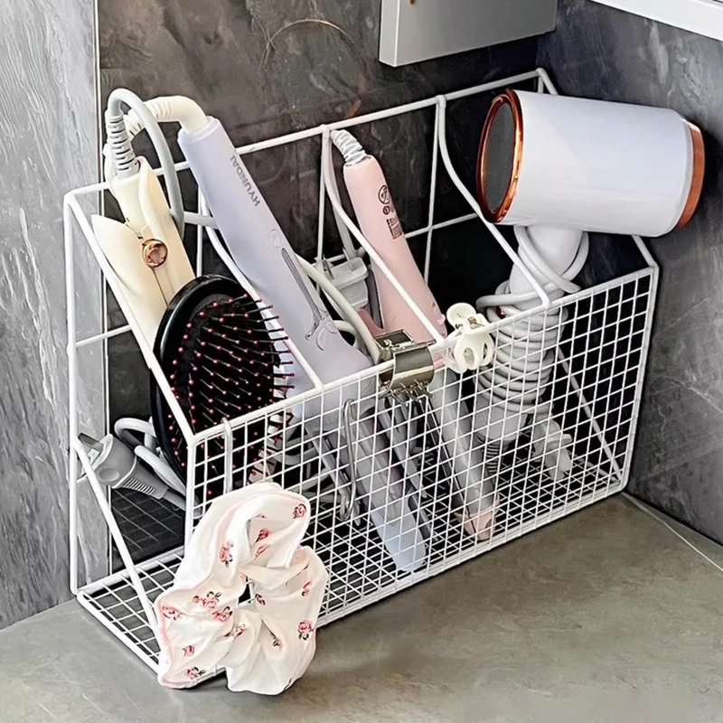 Características:1. A ferramenta de estilização de cabelo tem 4 compartimentos que comportam secadores de cabelo, chapinhas, modeladores de cachos e escovas, enquanto a cesta organizadora de banheiro ajuda a organizar os cabos; O fio de aço permite que você guarde as ferramentas mesmo enquanto ainda estão quentes.2. O organizador de ferramentas de cabelo é feito de ferro de alta qualidade, que é à prova de ferrugem e fácil de limpar. O fio de metal resistente ajuda a dissipar o calor e armazena instantaneamente suas ferramentas quentes, para que você não precise se preocupar em levá-lo para o banheiro.3. Mantém todas as suas ferramentas de cuidado com o cabelo separadas, organizadas e fáceis de encontrar; De tamanho generoso para que você possa guardar ferramentas de estilização quentes, seus pentes e escovas.4. Instala-se facilmente nas paredes do banheiro ou do armário com o adesivo incluído; Crie espaço de armazenamento adicional onde você precisar; Instale dentro de um armário.5. Ideal para banheiros, banheiros de hóspedes e lavabos, etc.