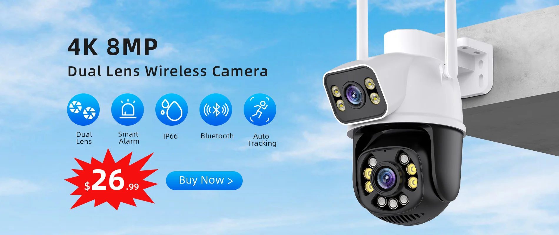 Principais Características:Câmera WIFI PTZ de rastreamento automático com lente dupla de 8MP para exterior.